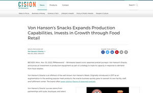 Von Hanson’s Snacks Expand Production Capabilities, Invests in Growth through Food Retail